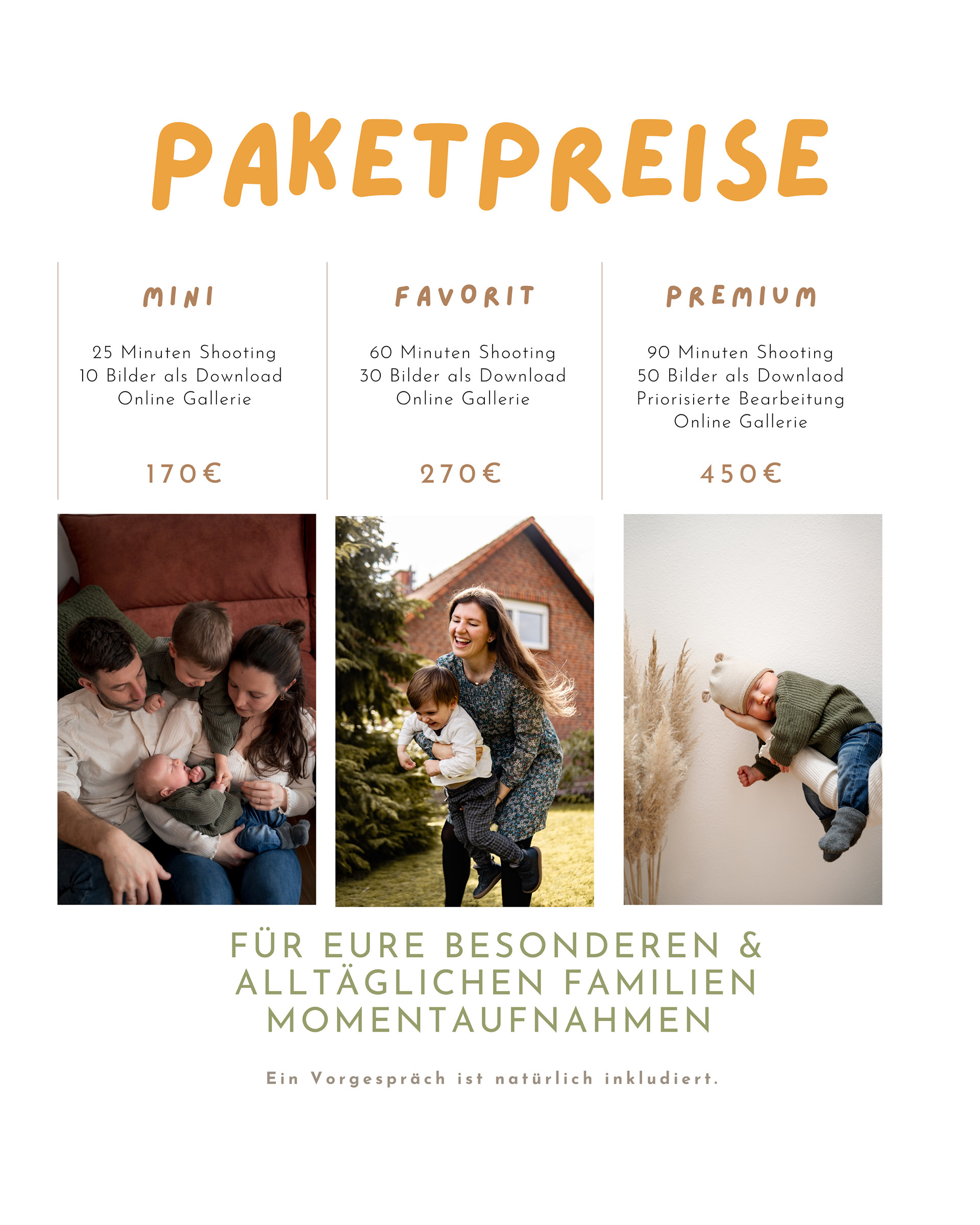 Neben diesen festen Paketen begleite ich euch auch bei besonderen Anlässen wie Geburtstage, Familienfeiern, Hochzeiten oder andere persönliche Meilensteine, die ihr für immer festhalten möchtet.